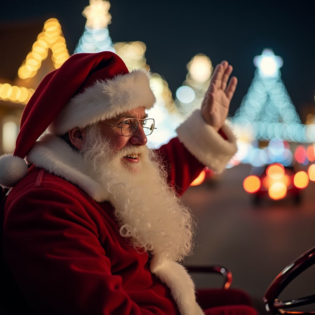 Park briefly at our designated selfie area where Santa waves and poses for photos from a safe distance.